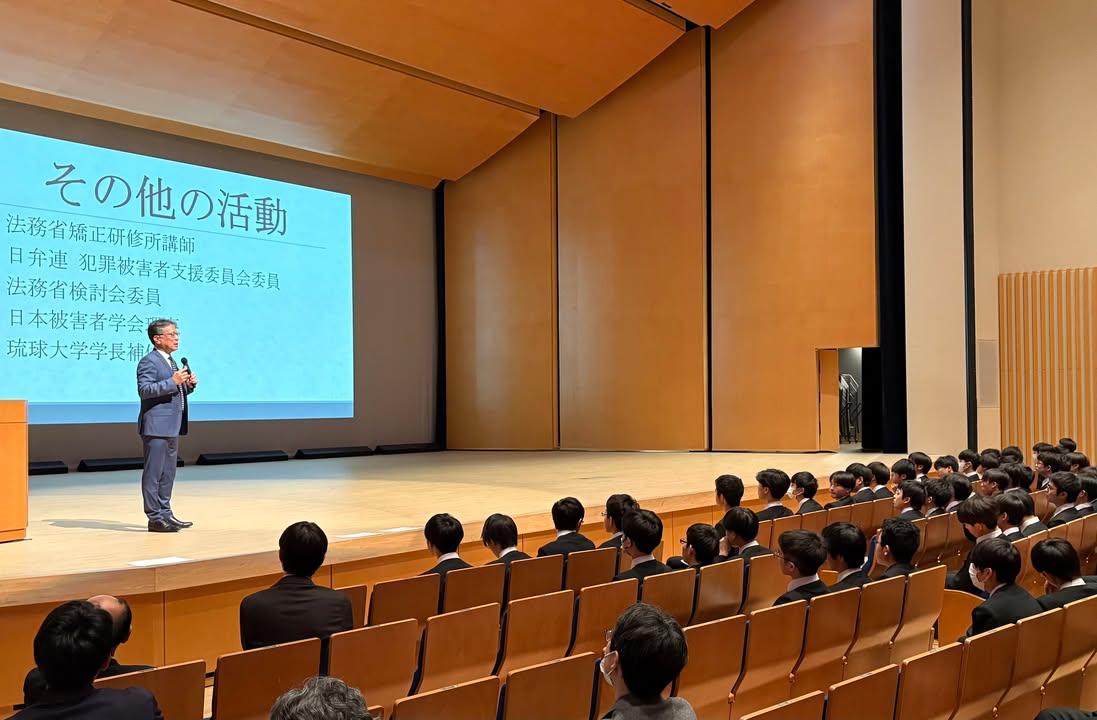4/19の高1土曜講座は、聖光アカデミアの会によるセミナーでした。講師は、琉球大学法科大学院教授で弁護士の齋藤実氏(23期卒)。講演のタイトルは、「被害者学の現在地-被害者支援のこれまでとこれから-」。齋藤氏の説明はとても具体的でわかりやすく、さまざまなデータとともに北欧との比較なども取り入れて説明されたことで、日本における犯罪被害者支援の現状の課題の深刻さが伝わってきました。頻繁に質問が生徒に発せられ、生徒たちが自ら考えながら参加する講演となっていました。中には法学や法曹の世界に興味を持った生徒たちもいたようです。聖光アカデミアの会は、大学や研究所などに所属する卒業生の研究者からなる組織で、母校への教育貢献を目的としています。毎年3~4回のセミナーのうち、1回は高1土曜講座として対面で実施していただいています。今回も会長・副会長をはじめ幹事の方々によって実施していただきました。アカデミアの会のみなさま、ありがとうございました。