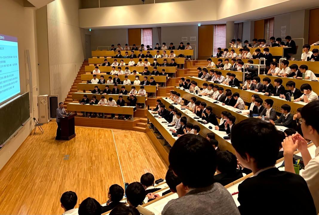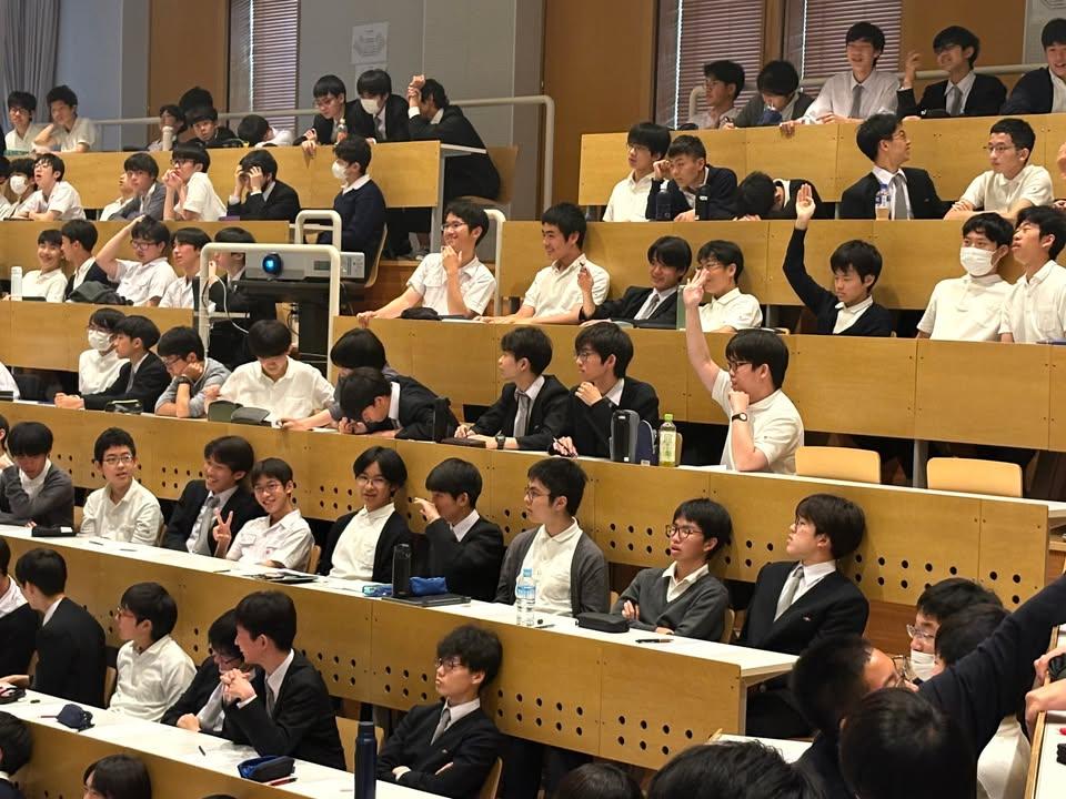 5月10日の高1土曜講座は、横浜市都市整備局都心再生課課長の島田浩和氏(33期卒業)による講演でした。テーマは「横浜のまちづくりについて」。前半は、人口動態や区ごとの土地利用状況、鉄道沿線の開発などからみた横浜市の概要についての説明でした。時折クイズをはさみながらの説明はとてもわかりやすく、横浜在住の生徒にとっても知らない知識が多く驚きだったようです。4割近くを占める東京から通学する生徒にとってはさらに新鮮だったようです。後半は関内周辺のまちづくりの説明でした。幕末の開港から始まって現在も続く関内駅周辺の開発へといった歴史の流れに沿った話は、毎日通学で目にしている光景だけに生徒たちにとってたいへん興味深かったようです。まちづくりという仕事に魅力を感じた生徒も多くいました。この土曜講座では、2学期後半から横浜市内をフィールドに地域探求に取り組む予定になっており、今回の島田氏の講演はその点でも生徒たちに多くの示唆を与えてくれました。