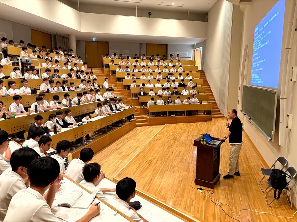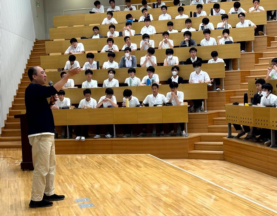 6/7の高1土曜講座の講師は、26期卒業でセガフェイブ代表取締役社長の杉野行雄氏でした。日頃からゲームやアニメの恩恵を受けている生徒たちにとって、製作者側の裏話やエンターテイメント業界の動向などの情報はとても興味深かったようです。様々な困難や課題にぶつかりながらも一人でも多くの人に居場所を提供したいとの思いで乗り越えてきたという杉野さんからいただいた、“自分のありたい姿=「ビジョン」を意識しながら人生を歩んでほしい”とのメッセージは、生徒たちの心に深く響いたに違いありません。