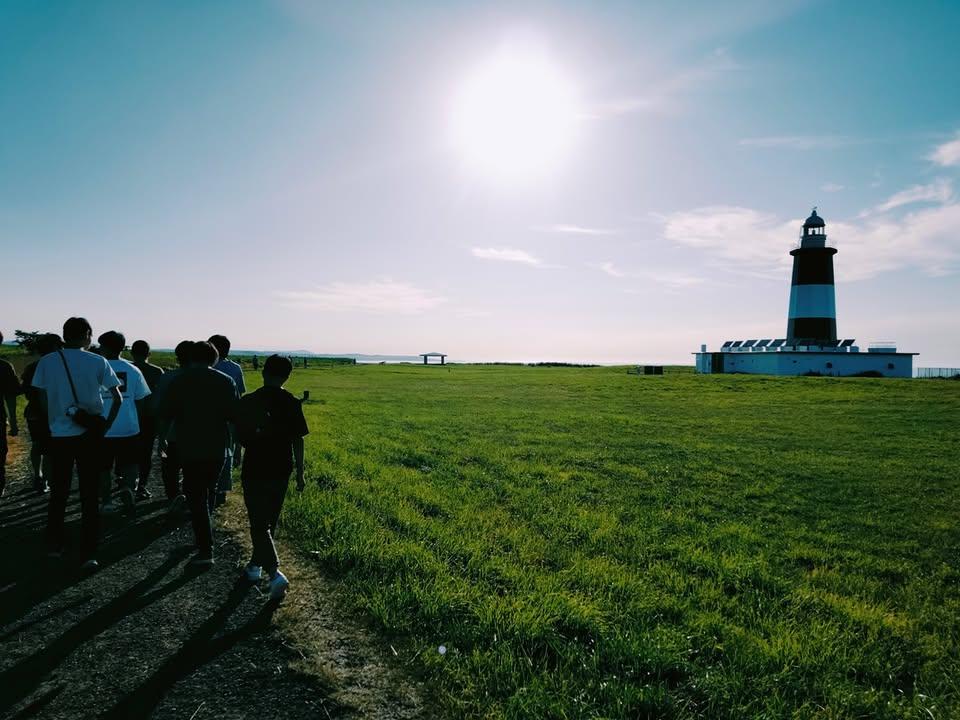 修学旅行3日目のC組は知床第一ホテルからバスで網走周辺を巡りました。まず最初に向かったのはオシンコシンの滝です。知床の景勝地、オシンコシンの滝は、「川下にエゾマツが群生する所」という意味のアイヌ語に由来します。斜里町の名所、天に続く道展望台では、約28㎞もの長さの直線道路の長さに圧倒されました。オホーツク流氷館では、網走で見られる流氷のメカニズムを知り、そこで形成される生態系を学びました。その後、-15℃を体感できる部屋に入り、北海道の冬の厳しさを実感しました。午後はサロマ湖に移動しました。サロマ湖ワッカネイチャーセンターでは、夏のサロマ湖を自転車で疾走しました。遠くに見える知床連峰の稜線とサロマ湖のさざなみを眺めながら自転車で走るのは、まさに爽快でした。修学旅行3日目はオホーツク海の風景とともに、北海道・網走エリアの自然と文化に触れることができ、非常に実りのある1日でした。(高2風早くんより)