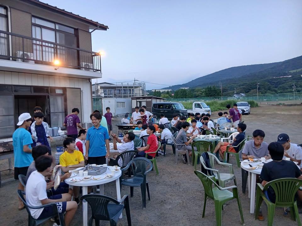 硬式テニス部では、例年通り、昨日より、山中湖畔にて夏合宿を実施しています。参加者は夏休みの後半に新人戦が控える高2、高1、中2で、横浜よりかなり涼しく、過ごしやすい環境の中、練習にいそしんでいます。多学年が一緒に活動する中で、先輩の技術の高さや思いやり、後輩のなかなかの巧みさ、また習得の早さなどに気づける、またとない機会となっています。明日からの天気が心配なため、明日の夜のバーベキューを1日繰り上げて実施していただき、皆で楽しくおいしくいただきました。64期高2にとっては最後の合宿となりますが、最終日まで実りあるものにしていきたいと思っております。