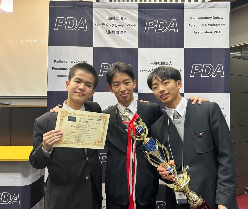 また、この全国大会で上位3校が参加できるPDA世界交流大会(1月開催)においても優勝し、聖光英語ディベート同好会としては初の同時優勝を果たすことができました。