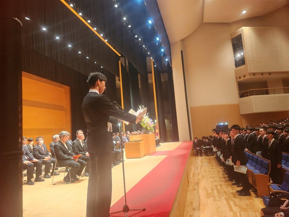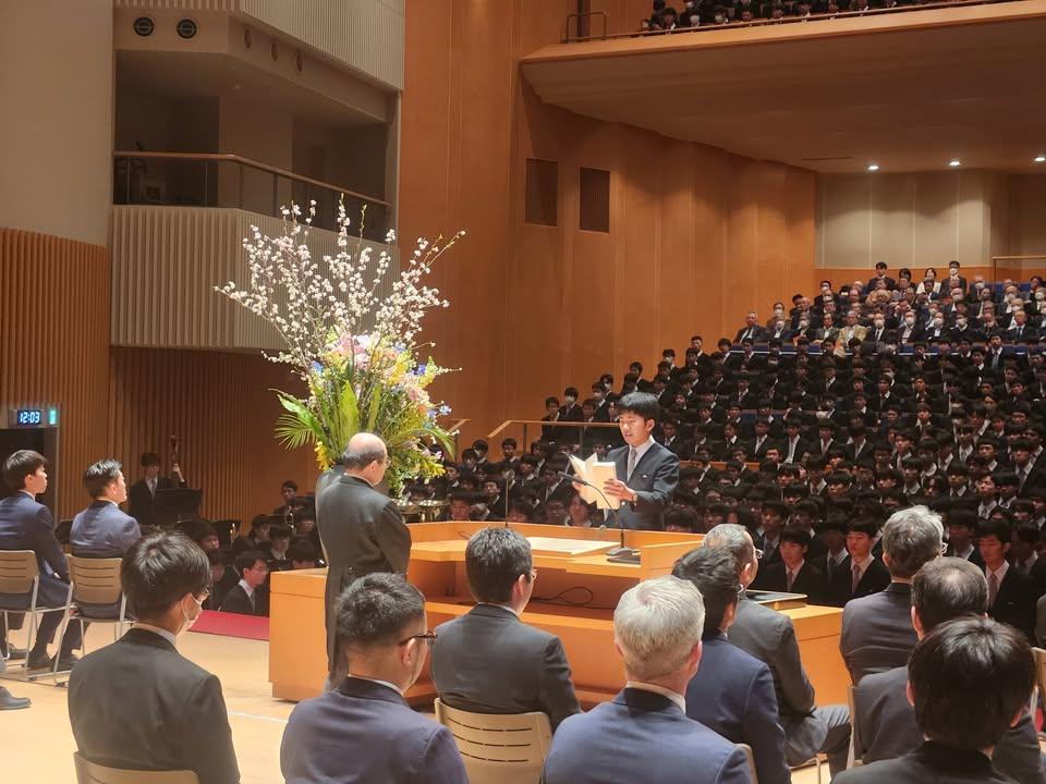 中1登校して間もないころの学年集会で「卒業生は皆紳士なんですか?」と聞いた人がいましたね。自分が紳士であるか、これから問い続けてください。卒業の後も、人と人のぬくもりを外の世界で広げていくことを期待しています。63期生徒諸君、卒業おめでとう。