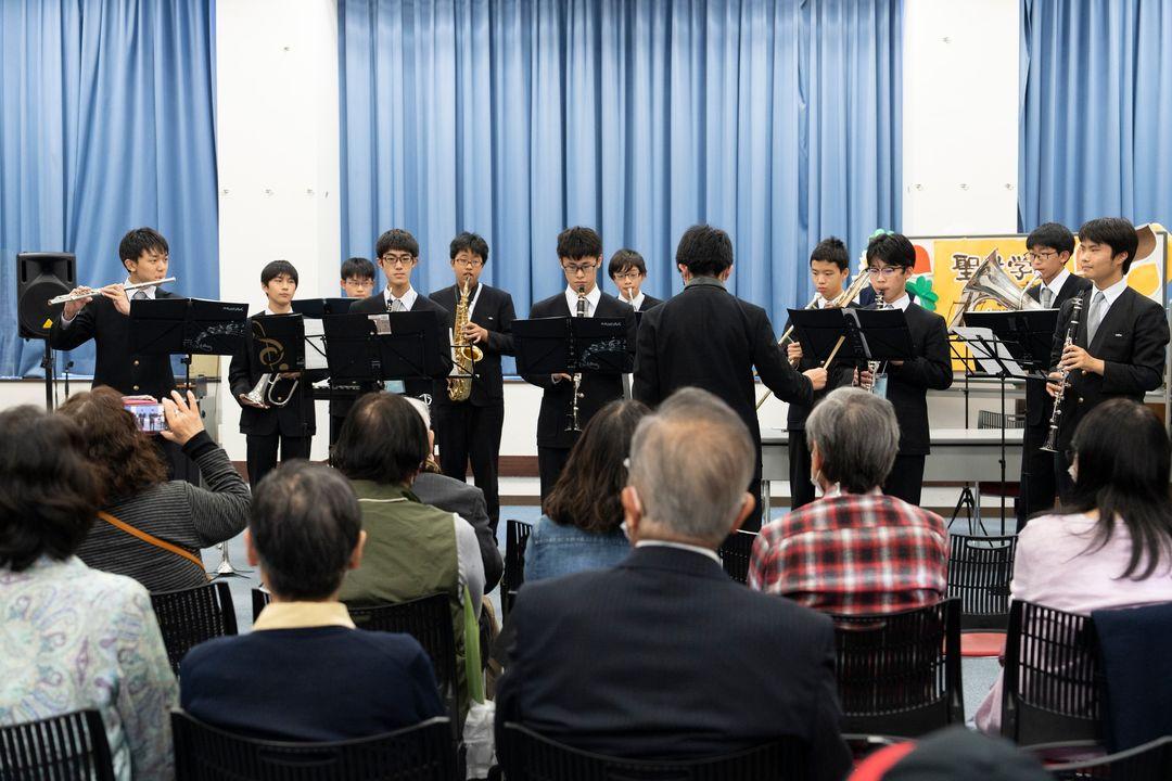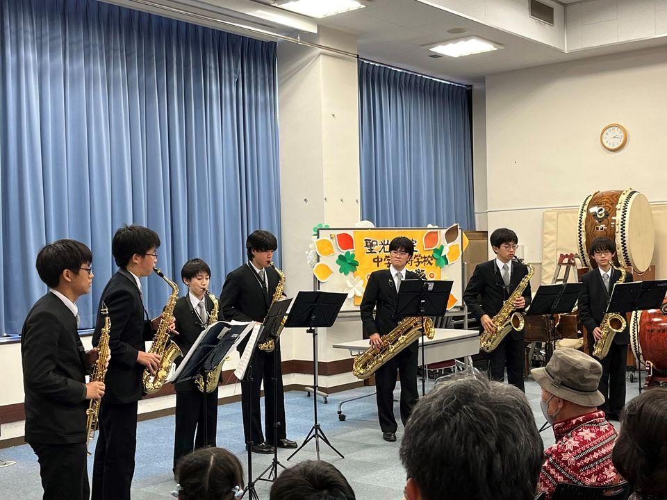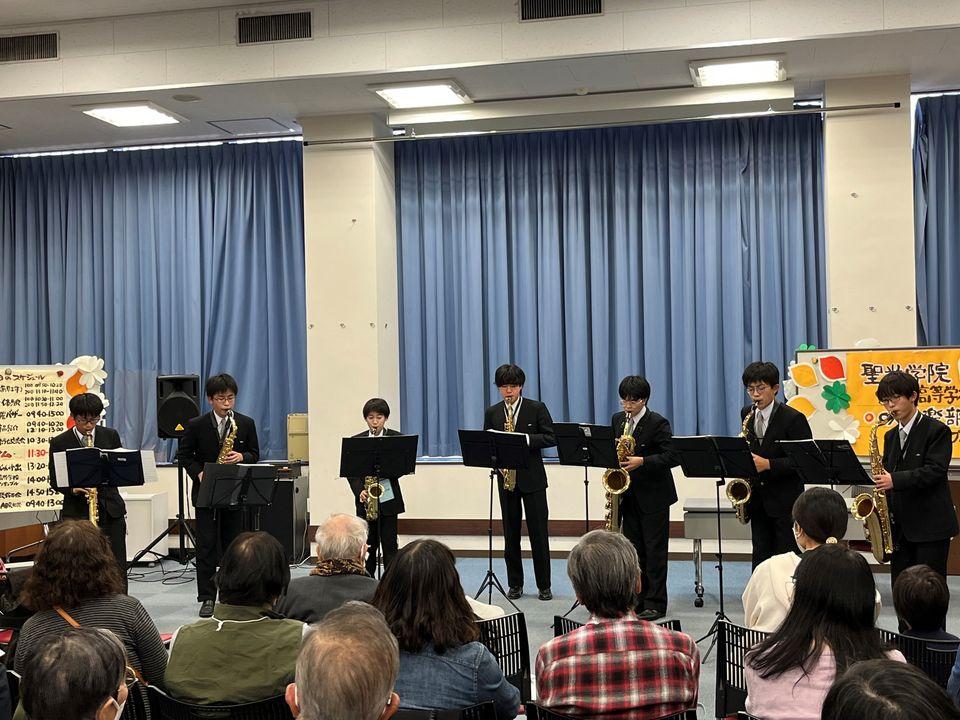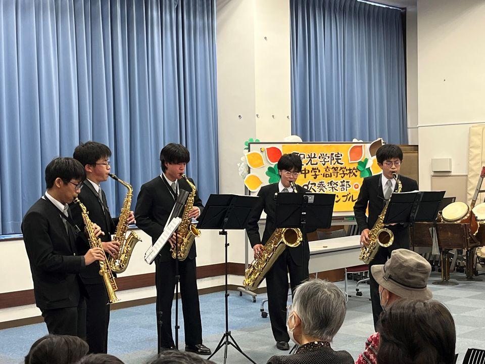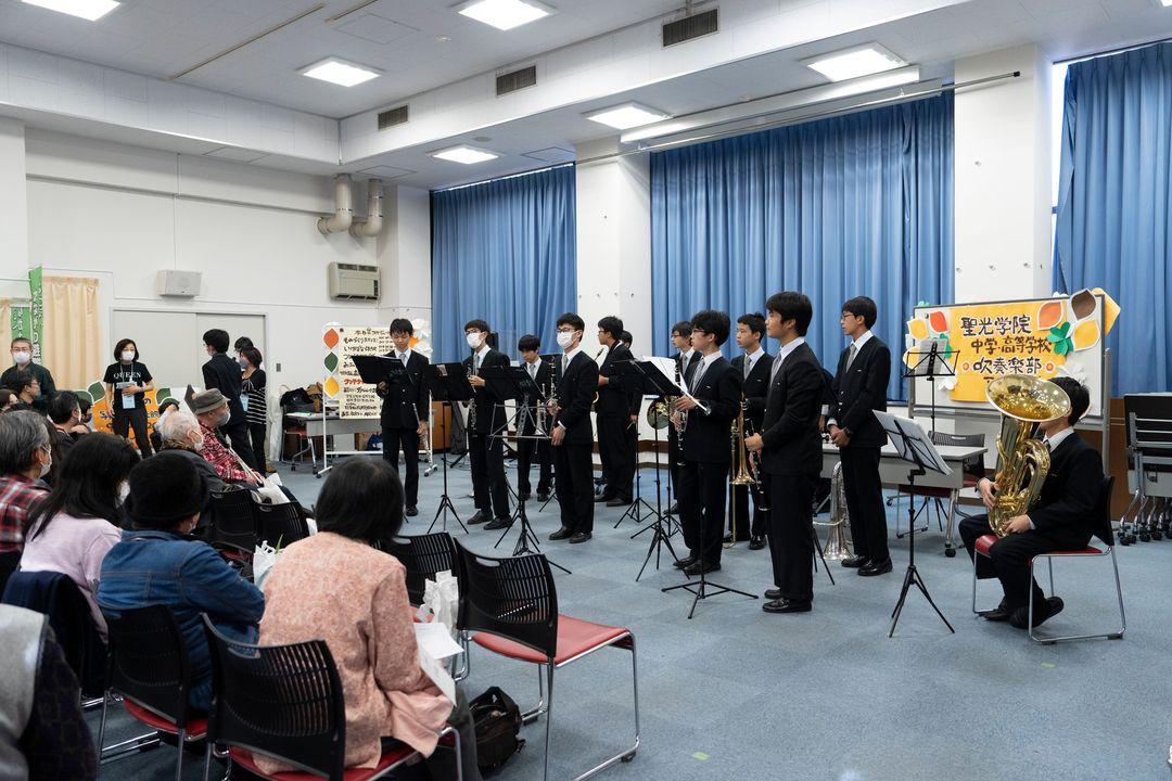 11月19日(土)に「第13回ふるさとコミュニティinかながわ」(NPO法人かながわ避難者と共にあゆむ会)が開催され、本校吹奏楽部からも20名ほどの生徒が参加しました。この催しは、東日本大震災ならびに原発事故により避難されている方々の交流を目的として開催されており、本校吹奏楽部の生徒たちはサックスアンサンブルと打楽器を含めた楽器演奏を披露しました。