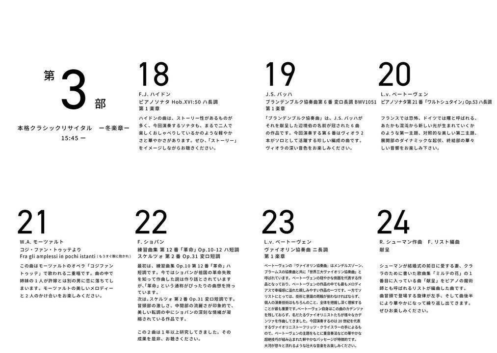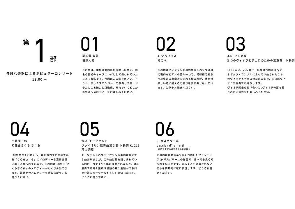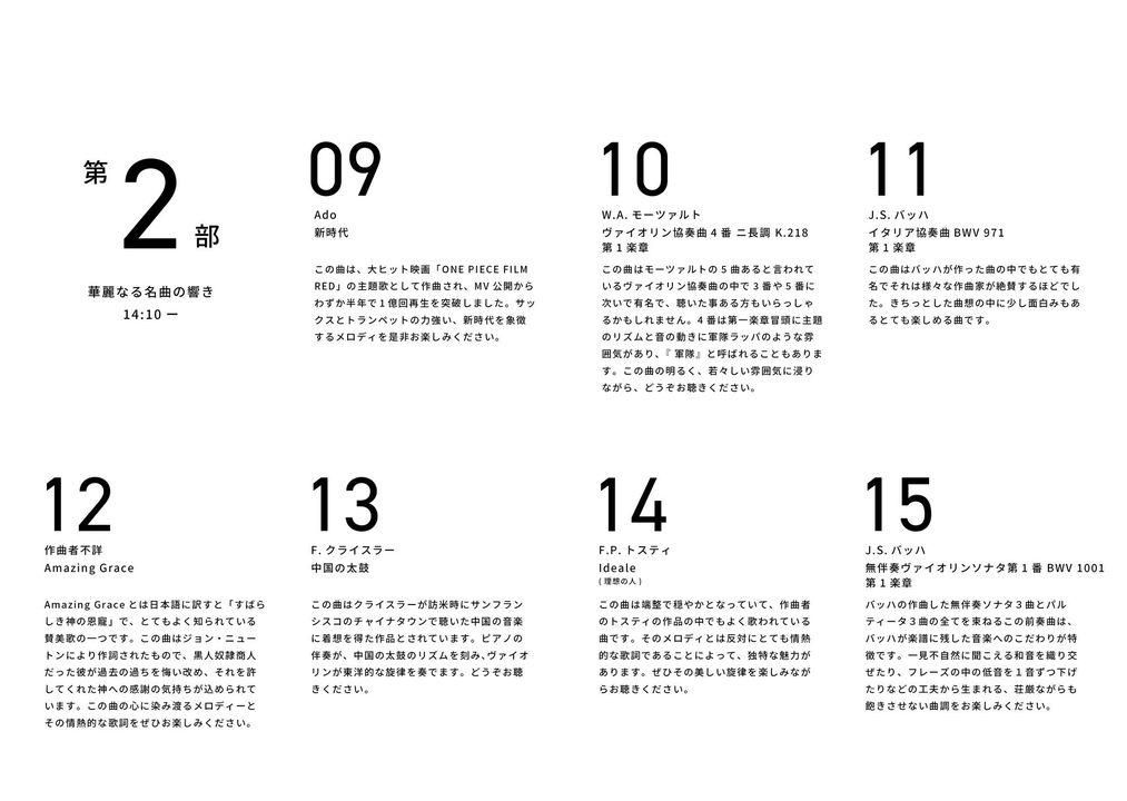 今回のコンサートは3部構成となっております。 各部ごとの出入りは自由となっております。