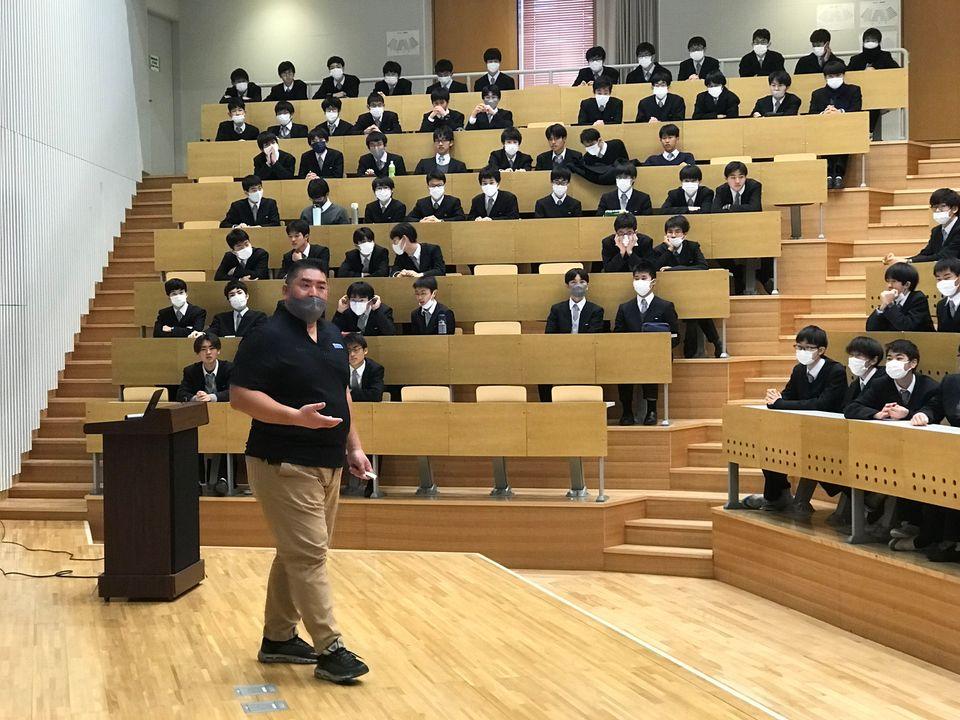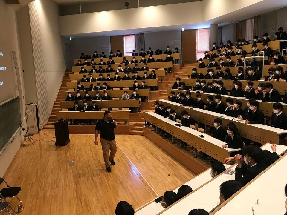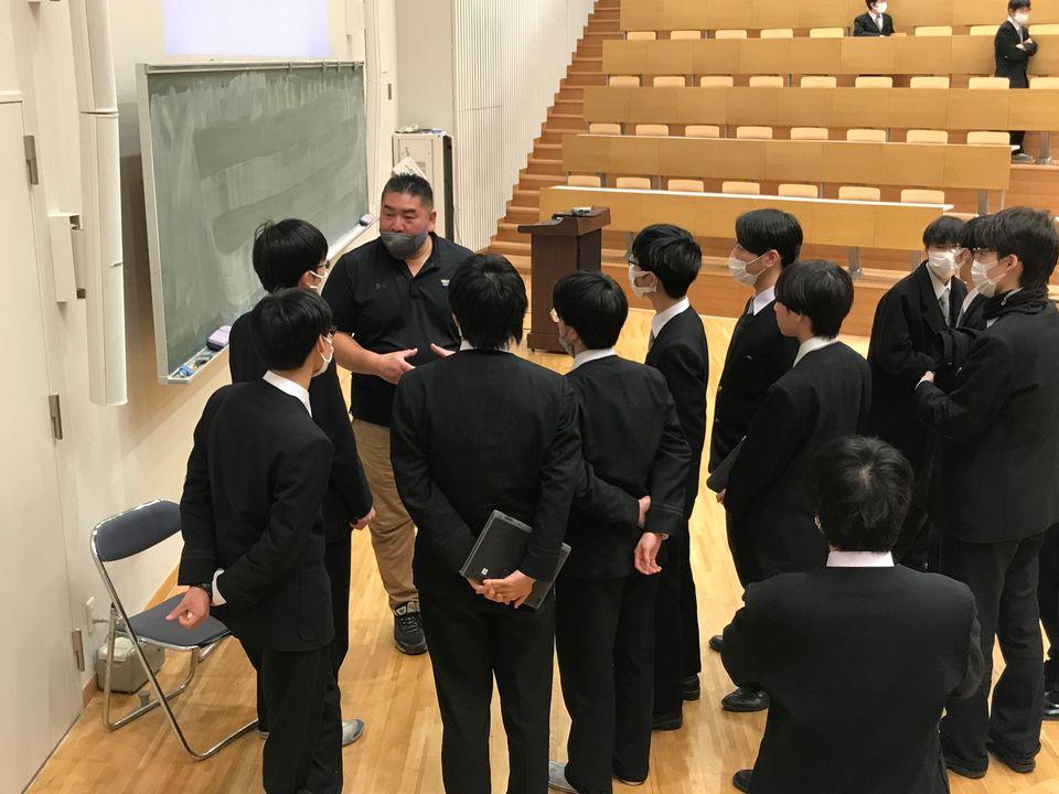 最終回となる2/25は、三沢英生氏(29期卒業)による講演でした。三沢さんは、外資系金融機関で活躍後、現在は東京大学アメリカンフットボール部監督・筑波大学客員教授・株式会社ユカリア取締役などを兼任されています。テーマは「スポーツを通じて社会を豊かにする」。まず目的をつくってから逆算で考えることや正解の無い問に常に向かい合うこと・利他の精神の大切などが熱い言葉で語られました。生徒からは「実践的な思考法や行動を教えていただいたので面白かった」「心の中に一生残る気がする」「自信に見合うだけのことができているのがすごいと思った」などの感想が寄せられ、強い印象とともに今後の指針のヒントをいくつもいただいたようです。
