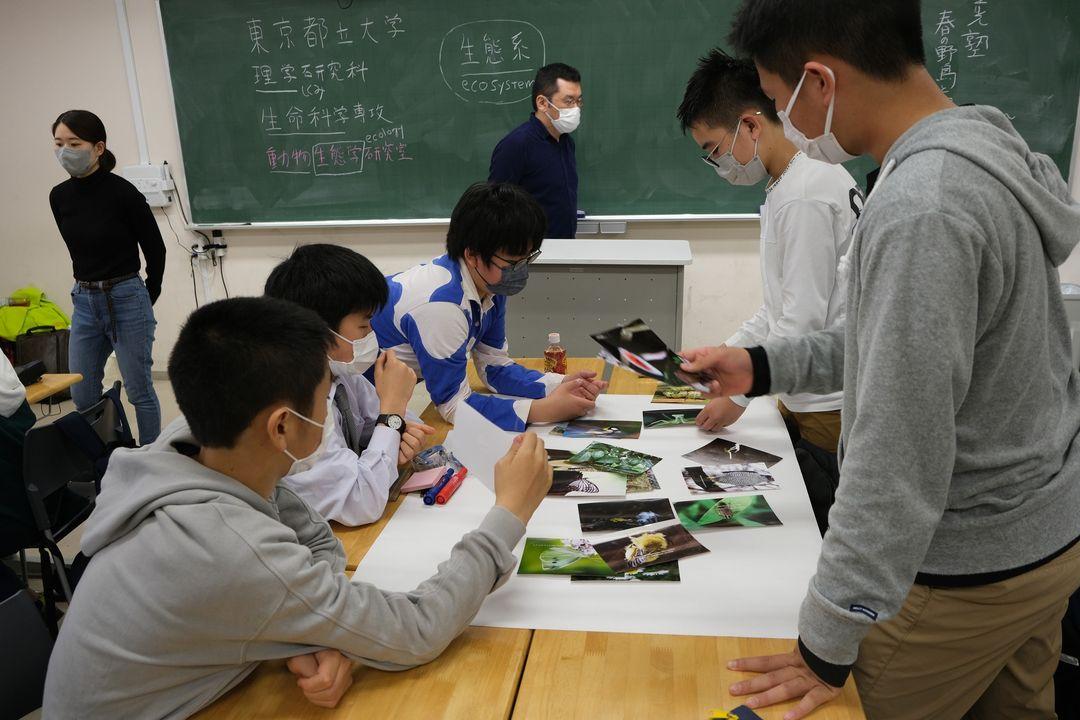 3/23・3/24の聖光塾「春の野鳥と自然探しに出かけよう」講座は、悪天候が予想されたため、場所を寺家ふるさと村から根岸森林公園に変えて実施されました。講師は東京都立大学動物生態学研究室の矢崎英盛先生(40期卒業)。アシスタントとして同研究室の杉山さんと橋本さんにも参加していただきました。3/24は予報と違って天候に恵まれ、満開の桜の森林公園で野鳥やリスなどたくさんの動物を観察することができました。午後は学校に戻って、生態系をテーマとしたワークショップに挑戦しました。動植物の関係をじっくりと考えることで生徒たち自身にも様々な気づきがあったようです。矢崎先生をはじめ研究室のみなさんのリードで、研究者がふだんどのような姿勢で取り組んでいるのか、その一端を知る貴重な経験ができた一日となりました。