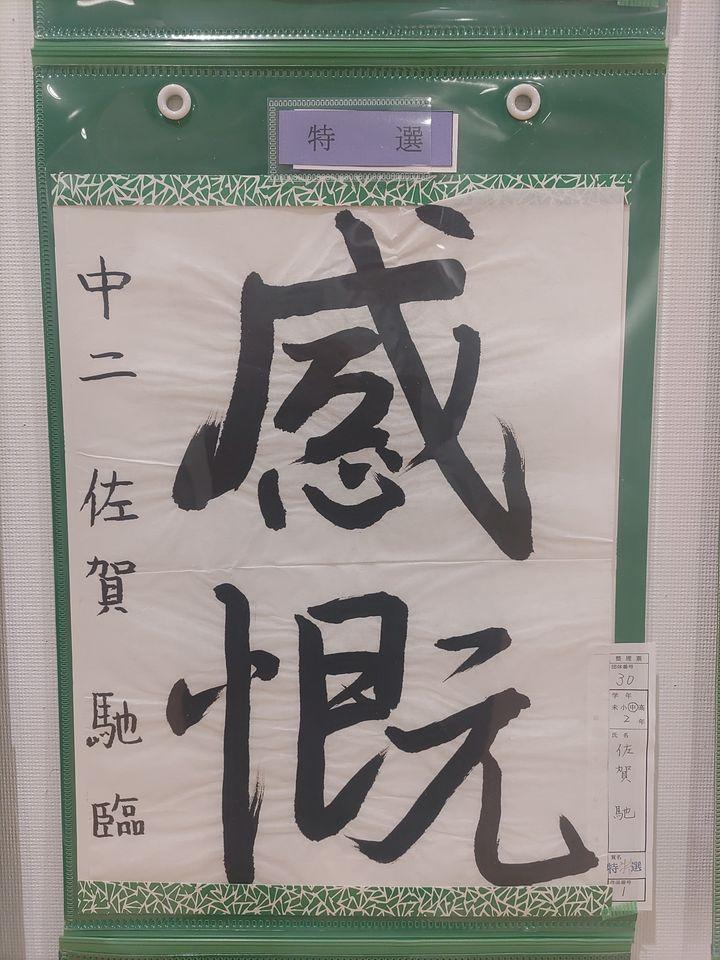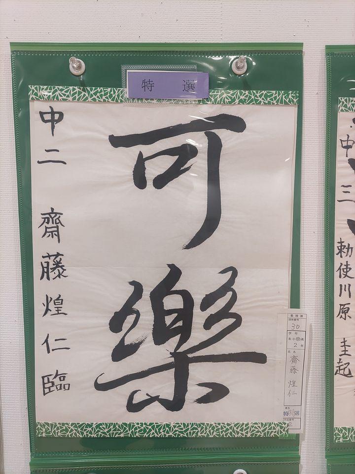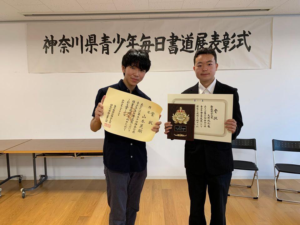8月に行われた第30回神奈川県青少年毎日書道展に、美術部書道班の生徒2名と中2芸術講座書道選択の生徒20名が出品し、4名の生徒が特別賞を授賞しました。