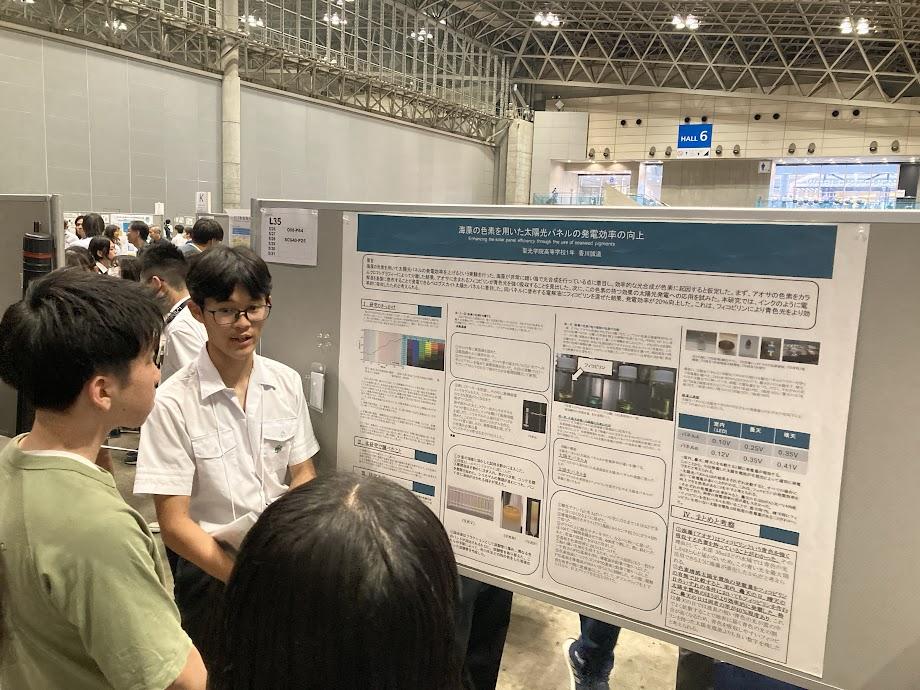 26日の高校生ポスター発表では本校生徒の発表があり、さまざまな研究者と議論を深められたようです。